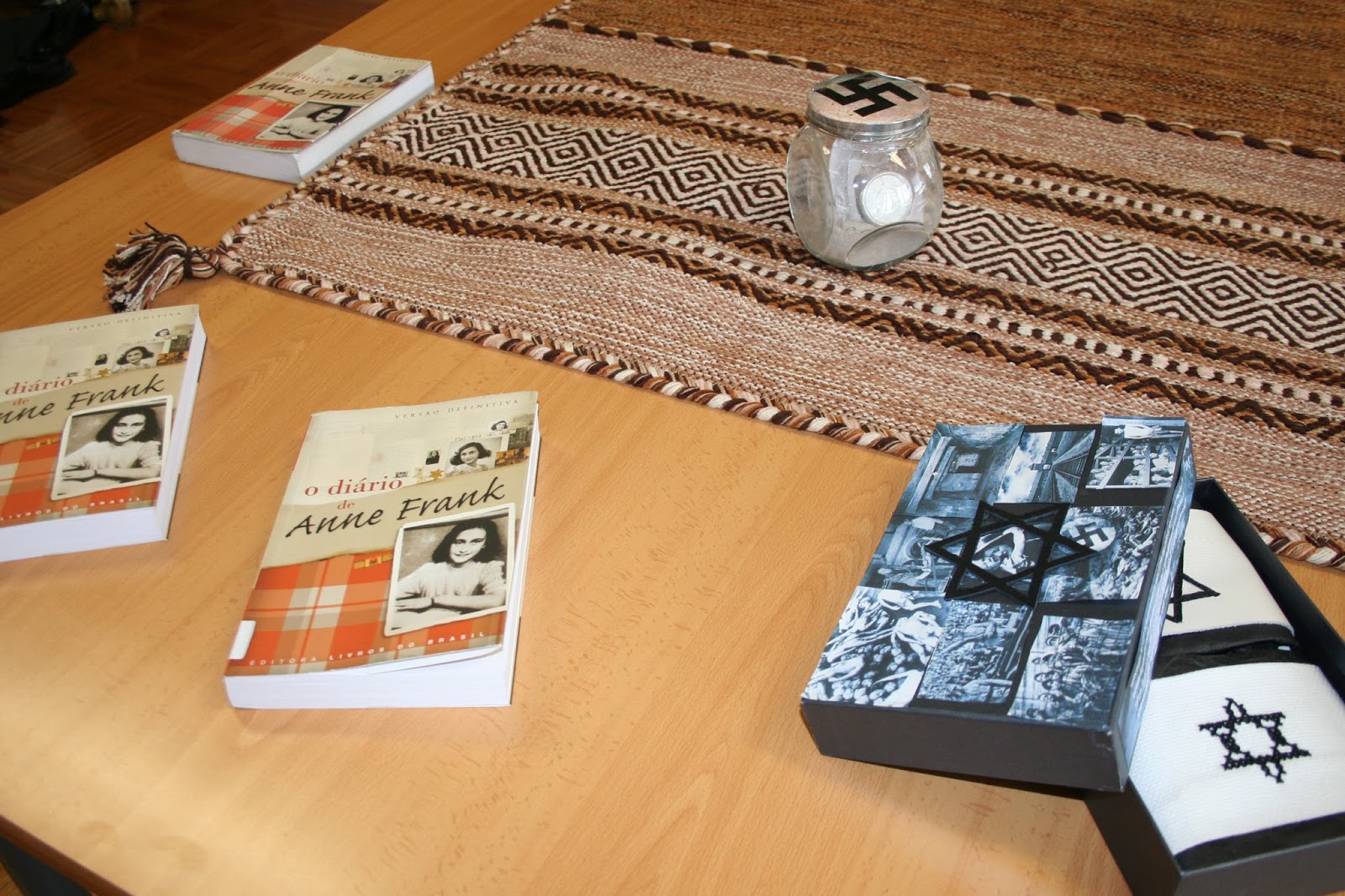 Em História, trabalhos alusivos ao Holocausto e objetos que remetem para a religião judaica e para referências do "Diário de Anne Frank".
