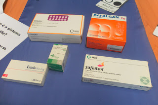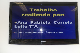 Exposição de trabalhos realizados pela aluna Ana Patrícia do 7º A e de objetos do quotidiano com legendas Braille.