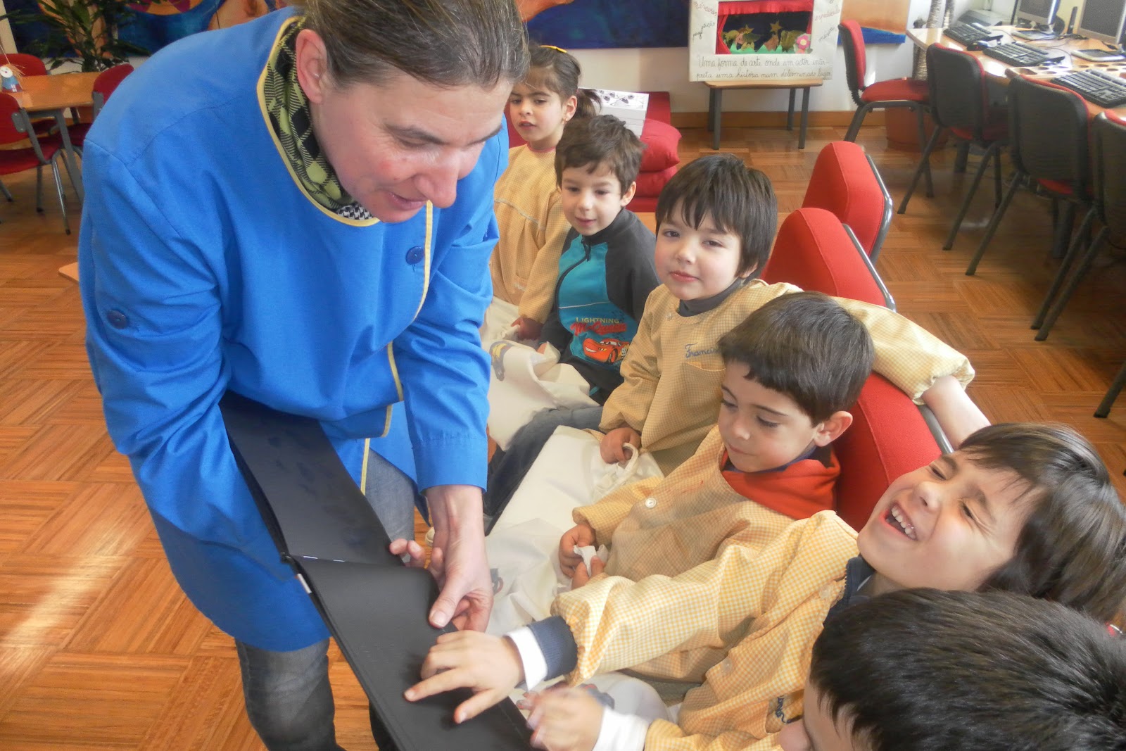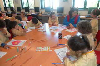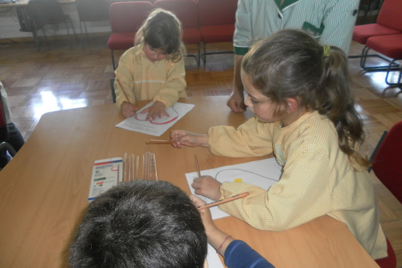 Alunos do pré-escolar a ler através do tato o Livro Negro das Cores.