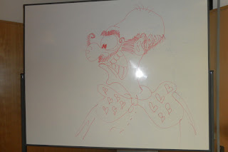Dinamizou com os alunos uma atividade de oralidade e escrita com a descoberta de um personagem para a elaboração de uma história:  os alunos definiam as características físicas e emocionais do personagem e o escritor desenhava; por fim pensavam numa palavra, diziam uma sílaba dessa palavra e assim surgia o nome do personagem.
